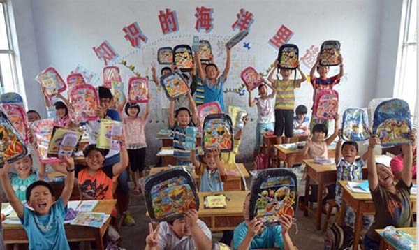 经过十四天的支教,我们与留守贫困儿童已经亲如一家,孩子们在学习上也取得了进步。在告别仪式上,联合举办方金乡县实验中学梁主任也亲临现场,向我们表示了感激之情。我们也为他们每个人都捐赠了一个小书包。接下来,留守儿童献上他们自导自演的小节目。调皮的魏硕表演了几个小魔术,可爱的三胞胎组合表演了《三只小熊》,还有他们全体的合唱《童年》和《让我们荡起双桨》。在童声童趣、欢声笑语中,我们和留守儿童一起做游戏、唱童歌,其乐融融,将本次告别欢送仪式一次次推向高潮。时光飞逝,很快到了我们分别的时刻,他们依依不舍,他们泪眼模糊,他们齐声和我们道别:“哥哥姐姐们,谢谢你们,我们会想你们,我们会记住你们的教诲,好好学习,不断进步。”看着他们的表现,我们知足了,我们开心地笑了。