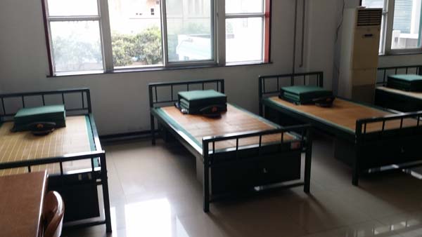 安全学院党员工作站“心系基层、圆梦中国”――安全党员工作站“践行核心价值观、汇聚安全中国梦”实践宣讲团队继续在徐州市消防支队泉山大队进行学习,队员们今天的学习内容是消防队的制度规章和内务整理,首先李老师带领队员们去参观消防队员的宿舍。第一眼望过去,每张床上的被子都叠得整整齐齐,是一个个标准的方块被。床单十分平整,没有一道折痕。桌子上的杯子自然排成一列,杯把不约而同的朝着一个方向。其中队员孙苏峰感慨道:“地上看不到一点灰尘,消防队员的内务整理完的地面都能当镜子了!”队长潘荣亮更是表示,消防队的内务水平体现了他们高标准高要求的作风,正是这种严谨的作风才能保证他们在训练和工作中不出问题。