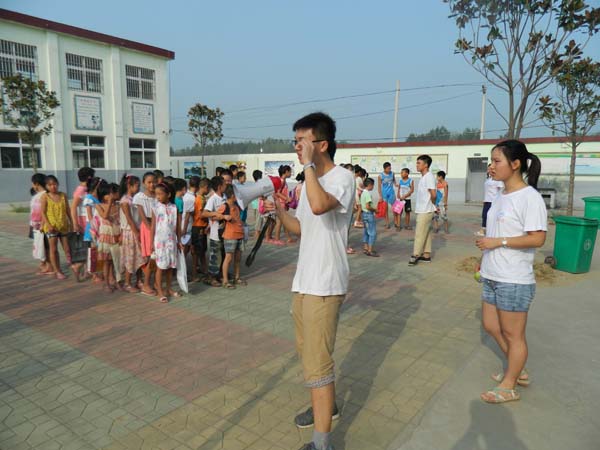8月2日上午8时30分,参加支教的同学全部报名完毕。志愿者和同学们一同在牛庄小学的操场上举行了暑假支教团的启动仪式。