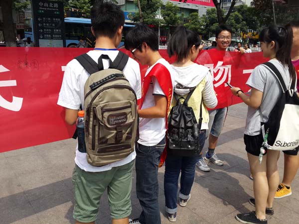 7月18日上午,“寻找蓝天”社会实践团来到了徐州市中心,进行市民环保签字活动,这次活动诣在扩大环保宣传的范围。在市中心这种人流量大的地方可以有效的让更多的人接受实践团对环保的呼吁。