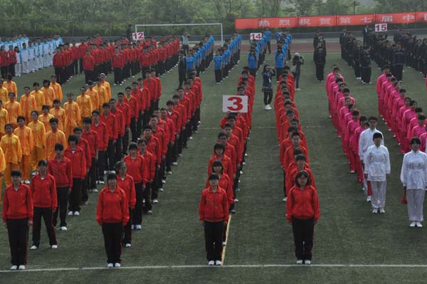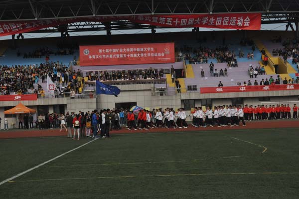 伴随着激进昂扬,催人奋进的运动员进行曲,各院级代表队以整齐的队伍依次入场,安全学院本次的队列可以说是创意十足,别出心裁,队员们分别穿着红色和白色的服饰,迎着早晨明媚的阳光,迈着锵铿有力的步伐走向主席台,靠向主席台的同学高举“安全学院,勇争第一”的标语,表明了安全学院在本次运动会中志在必得,舍我其谁的决心,向所有人展示着青春的风采。在各个学院入场之后,接下来举行的是庄严的升国旗仪式,军乐队奏响国歌,全场起立,面向国旗行注目礼,仪式过后,紧接着举行的是太极拳比赛,在比赛当中,参加比赛的同学们身着统一的服装,拳法动作行云流水,整齐划一,赛前训练的辛苦在今天得到了回报,在全场沸腾的掌声当中,本次运动会开幕式顺利落下帷幕。