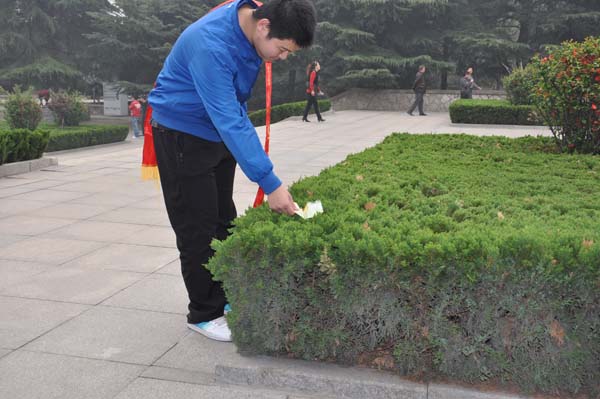 到达纪念塔后,扫墓的同学们都被庄严矗立的雄伟纪念塔所震撼,心中充满凝重。悼念仪式开始了,同学们走到庄严肃穆的纪念塔下,低头默哀了3分钟,同学们庄严的目光寄托着对烈士的崇敬和哀思,他们用自己的诚挚之心缅怀着革命烈士为祖国做出的伟大贡献。接着,同学们围绕纪念塔参观,注视着墙上一个一个烈士的名字,看着壁画上那逼真的场景,心中那热爱祖国的满腔热血都快要沸腾了。扫过墓后,同学们又自发地清理纪念塔园区,显示出了矿大学子应有的素质。