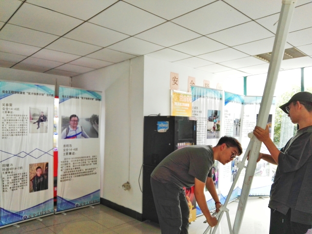 上午九点,志愿者们在梅三一楼右侧平台集合,开始布置迎新会场。学院分别在三食堂广场、梅苑三号楼一楼设有迎新站,便于引导到校新生报名。当新生从学校东门进入抵达一号迎新点后,三食堂迎新点志愿者负责引导新生前往梅苑三号楼一楼进行报道。梅三迎新点有大量志愿者负责录取新生信息、检查录取通知书、发放新生大礼包,同时引导新生领取卧具、核对军训服装、前往新生宿舍。正值安全学院建院十周年之际,安全学院迎新实施新方式、突出新特点。三食堂迎新站张贴有学院院徽、学院吉祥物安安和消消的展板;梅三迎新点设有党建展板、优秀毕业生优秀学生展板,立有新生签名墙、照相留影框,同时还放有投影仪以便实时播放学院视频。下午两点,迎新准备工作全部结束,学院志愿者们对迎新工作进行了实习演练。