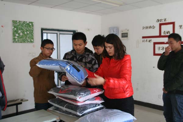 党员工作站为贫困建档生新生送上了冬日御寒的衣物。