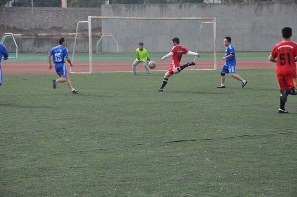 中午12点50分,随着裁判一声令下,安全学院与电力学院的小组对抗赛正式开始。比赛开始后,电力学院率先发难,七号球员凭借一记漂亮的射门攻破了安全学院的大门。然而开场失利的安全学院的球员们并没有气馁,在后面的比赛中展现出了自己勇往直前的精神面貌和昂扬向上的斗志,场边的观众们也不断为他们呐喊欢呼、加油助威。上半场的比赛进行到一半时, 51号球员齐世铭带球进入禁区,迅速踢出一记大力抽射,令人遗憾的是球击在了门柱上。上半场临近尾声时,电力学院获得一粒点球并罚进,随着裁判的中场哨声响起,半场比赛也正式结束。中场休息过后,战况更加激烈的下半场比赛开始。比赛进行到46分钟时,安全健儿再次取得机会。20号球员穆拉提艾利突破对方防线,接到队员传球,抬脚,抽射,但球最终越过门框而出。电力学院则转为保守战术,双方都没有改写比分。最终,安全学院以0:2的比分输给了电力学院。