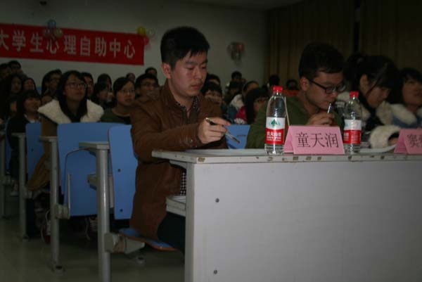 派出代表上台,利用ppt的形式,向在场的同学展示了安全学院对团辅活动的设计。安全学院预计于11月30日在第三运动场开展一次团辅活动。全院学生以班级为单位,以“缩小包围圈”、“穿越地雷阵”、“成长三部曲”与“勇于承担”四个游戏为团辅活动的主要内容,旨在丰富安全学院学生的课余生活,增加彼此之间的凝聚力,让大家享受更为健康积极的大学生活。安全学院的设计赢得了台下的阵阵掌声。接着,电力工程学院等学院的心理自助中心成员也陆续展示了他们对其学院团辅活动的构想与设计,同样丰富多彩,也充满了学院的特色。8:45,共计八个学院展示完毕,由评委点评各学院的设计,比赛成绩择日公布。9时许,团体辅导系列活动正式结束。