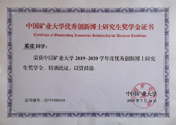主要荣誉:2019-2020学年度国家奖学金;2019年优秀创新博士奖学金;2019-2020年校级优秀学生;2018-2019连续两年获得博士研究生学业一等奖学金;韩国三级