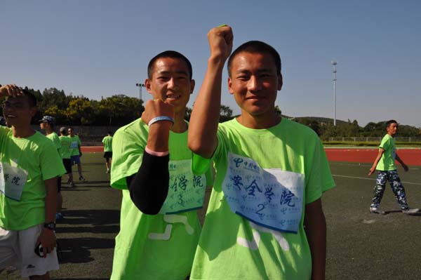 2013级学生军事技能训练动员大会,学生定向越野赛在学校第二运动场举行。来自全校19个学院代表队,近60名运动员参加了本次比赛。安全学院大一新生定向队共派出1女2男3名运动员参加此次定向越野比赛,经过一个半小时的激烈角逐,学院定向队获得11名的好成绩。
