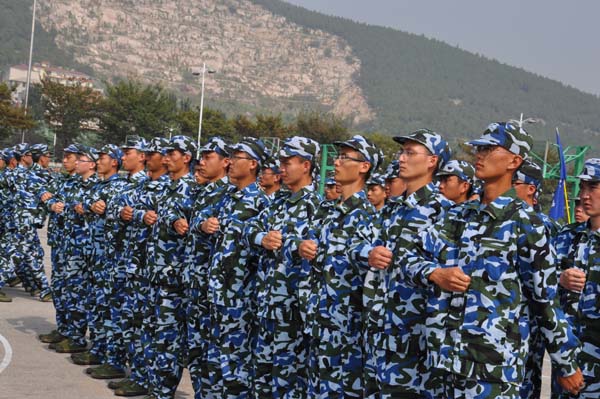 加强排的新生们不顾身体的疲惫与环境的残酷,坚持训练,精益求精。