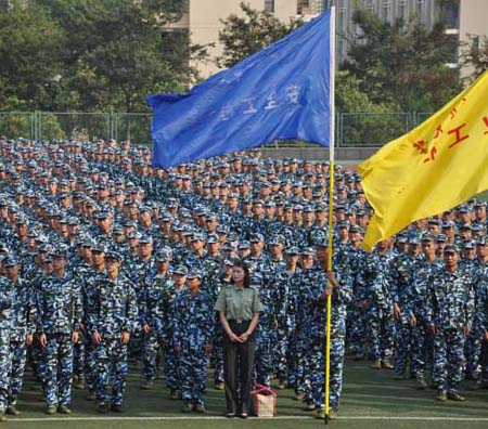 下午四点半左右,学校军训动员结束,各学院新生在教官们的带领下,奔赴各自训练场地,正式开始了为期两周的艰苦而难忘的军训生活。