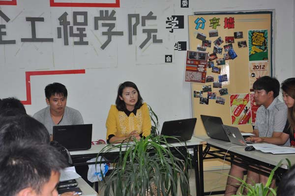 8月29日晚,为了更好地布置新生接待工作,安全学院团委学生会在梅三五楼活动室召开了以“迎接2013级新生”为主题的工作会议,辅导员孙婷老师和杨洋老师参加了本次会议。
