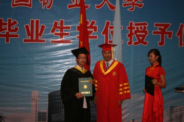 仪式上,李增华副院长表示,大四的同学们今天就要正式毕业了,他们即将踏上新的征程,学校学院都希望他们今后能够更加努力,为母校争光。而后,章毛平书记满怀欣喜地与毕业生握手表示祝贺,并亲切细心地为每一位毕业生拨流苏,并在院旗下与其合影留念。随后,葛世荣校长亲自为毕业生们颁发学位证书。葛校长高兴地与每一位毕业生握手道贺,并亲切地与他们在校旗下合影留念。
