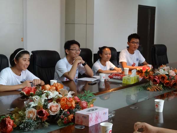采访刚开始,赵书记首先问清了队员们的名字,并且很快与队员们熟悉。接着,赵书记询问队员队服上“三下乡”的含义,队员们根据自己的理解做了回答,但赵书记并不满意,随后赵书记结合实际向队员们详细解答了其含义,让队员们充分认识到自我不足。之后赵书记针对当今大学生过于浮躁、过于现实的现象做出了自我意见:不要太看得起自己,并建议同学们“肯得机”(学会抓住机会),“埋当劳”(要艰苦奋斗),才能成为“必胜客”。随后赵书记运用类似的生动比喻让同学们对煤矿产业有了深入了解。