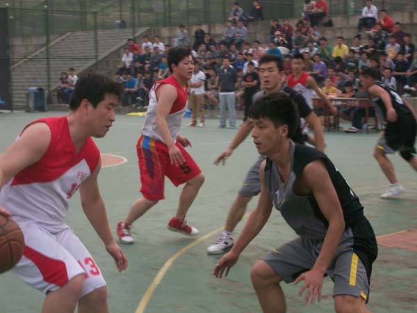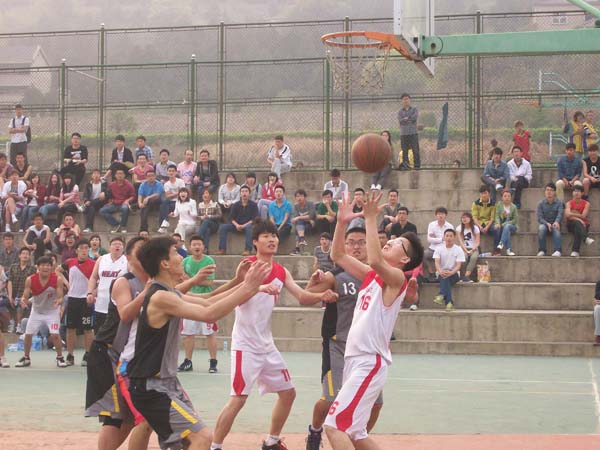 下午4时10分,比赛正式开始。比赛在观众的欢呼声中拉开序幕,两队实力均很雄厚,均在之前的比赛中取得了优异的成绩。但由于比赛时间较紧,大家刚下课便匆忙赶去,加之天气炎热,更增加了对身体的考验。双方球员气势都有些低落。比赛前3分钟,双方各一个罚球得分。相比之下,矿业学院的球员似乎进入状态更快,矿业学院的11号队员为本队赢得一球,紧接着15号队员一鼓作气一个漂亮的2+1将比分拉开。安全学院见势不妙也不甘示弱,无奈时间有限,第一节比赛以5比11结束,矿业学院领先。第二节开始后,安全学院积极走位,加紧准备反超。13号队员技巧娴熟地来回穿梭于各队员之间,远处的跳投准确命中。10球员守住篮下,保证篮板。安全学院在队员们的完美配合下逐渐取得优势,第二节结束时安全学院将比分差距缩小成1分。第三节开始,双方队员没有丝毫的放松,偶尔的擦伤后也迅速调整归队继续奋战。安全学院凭借凌厉的攻势,连续两次突破矿业学院的防线并成功得分。随后,比赛进入了艰苦的拉锯赛阶段。双方利用严密的配合同对方较量。第三节第5分钟,矿业学院队员带球走步,痛失球权。安全学院队员抓住机会,实施快攻,将比分拉大。双方队员们动作灵活,配合默契,一次次精彩的定点投篮牢牢吸引住了大家的目光。矿业队并未泄气,又奋力追赶。实力相当的两队为大家奉献了一场精彩的视觉盛宴。比赛节奏逐渐加快,围观的群众时不时地爆发出“好球”的喝彩声,女生们为学院的加油鼓气也为比赛添色不少,现场气氛越来越热烈。最终,比赛以40比36结束,安全队力压矿业队4分