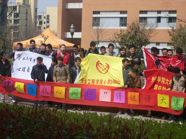 心理自助中心联合文法学院、计算机学院、矿业学院、理学院等学院心理自助中心于三食堂广场开展第二届“我与我心同行”猜谜语大赛。