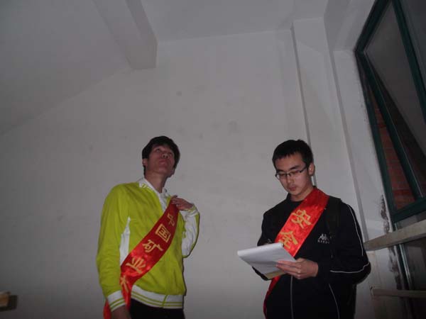 班会结束之后,安全12-4的同学们随即践行了雷锋精神――调查统计校园内所有宿舍楼内楼道照明灯是否正常,影响同学们晚上出入照明,并记录。3月26日晚9点,在班长分完组之后,全体同学们拿着本子和笔在三食堂会和后便准时出发了。同学们按着分组将学校的宿舍楼进行统计计数,并于10点回到出发点,由班长对数据进行统一处理,上交学校后勤,等待相关人士维修。班长说类似这样的活动今后还会继续举行。