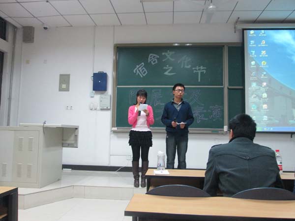在主持人的介绍声中,第一个进行参赛的宿舍登台表演。紧接着,每位出场的同学都以宿舍成员为中心,围绕着宿舍成员的家乡,喜好和特点解说了自己宿舍装扮的用意和宿舍名字的含义。其中,安全学院的同学不但秀出了自己宿舍的精巧布置,更是秀出了宿舍成员之间铁打的情谊。活动井然有序地进行着,在场的观众也同样积极热情。