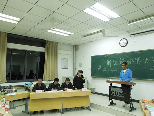 辩论赛决赛于教四C102顺利展开。此次辩论赛由安全12―2班王朔主持,正方反方分别为安全12―3班和消防12―1班。何选择、李翰林、周松、杨旭、肖义萌担任了此次辩论赛评委。