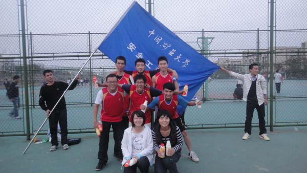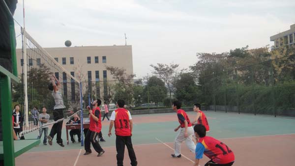 当天下午4点左右,两院的队员就已到达赛场热身,做好赛前准备。随后,于4:15,随着一声哨响,比赛正式开始。安全学院率先拿下第一球。随后,安全学院的队员按照事先布好的战略,稳扎稳打,加上8号队员王建新的巧妙扣杀,很快就以25:19的比分在第一局中胜出。比赛进入了第二局,安全学院依然采取稳扎稳打的攻势,保持着良好的状态。而矿业学院却因此方寸大乱,连连失误。当比分被拉到14:9时,矿业学院排球队队长提出了中场休息,但这并没有打乱安全学院队员的进攻节奏。片刻的休息之后,矿业学院的队员虽加紧了防守,但面对安全学院队员迅猛的攻势,矿业学院依然处于弱势,最终安全学院以25:14的比分轻松拿下第二局。关键第三局中,安全学院的队员势头依旧不减,并首先赢得一球。由于8号队员王建新的准确判断,安全学院连连得分。而后,矿业学院迅速调整了步调,逐渐拉近了比分并开始反超。应对这一严峻场面,安全学院的队员不甘落后,凭借沉着冷静的良好心态,以25:22的比分赢得了第三局的比赛。最终,安全学院以3:0的绝对优势赢得了整场比赛的胜利。