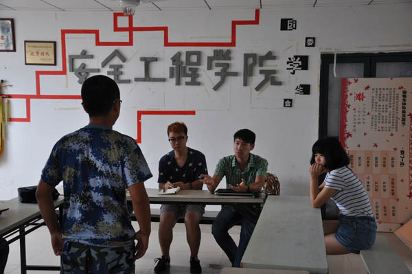 虽然14级的新生们在一上午的训练之后都感到万分疲惫,但报名参加选拔的同学还是早早集合到梅三五楼,积极为选拔做赛前准备。12:30整,迎新晚会的人员选拔正式开始,首先牛壮告诉新生们要放松心态,鼓励同学们拿出自己最棒的一面来,在他讲话结束之后,迎新晚会演员选拔正式开始。第一批参加选拔的是乐器类的演员,安全学院14级的新生可谓人才济济,吹拉弹唱均不乏人才,其中来自新疆的艾力克木江同学的吉他演奏震惊四座,获得评委组的一致好评,而拉小提琴的周敬轩也让评委们纷纷点头称赞。在接下来的歌唱组选拔中,安全14-3班的王子涵同学用一首《答应不爱你》征服了各位评委,成为歌唱组第一个入围的选手。