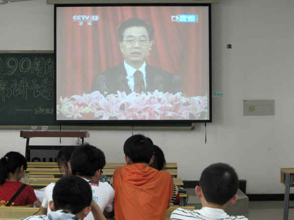 会议主要以观看五四青年节胡锦涛主席在人民大会堂的讲话视频为内容。参加班会的同学都认真地观看、学习了讲话,并深深感受到作为青年学生应有的责任、高尚的品行及远大的理想。前十名的同学也要求在班会后写一份关于胡锦涛主席讲话的约1500字的感言,使班会不仅让同学们学习到讲话的内容,更能将这些内容转化为自己的领悟,升华了班会的主题,提升了青年学生的思想素养。