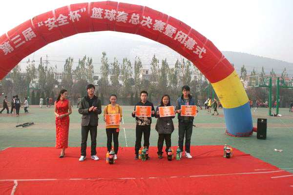 下午2时整,安全11-3班班主任戚绪尧老师、安全学院辅导员李成刚老师、学生会主席郭良军、院团委副书记朱晓宇、李念泽、分别对获奖班级进行颁奖。安全学院团委学生会体育部部长蒋恺致闭幕词。本次比赛中,安全11-3班摘得大赛桂冠,安全09-3班获得亚军,安全10-3班获得本次大赛的季军,安全09-1班、安全09-2班、安全09-4班、安全08-2班、安全08-3班获得“安全杯”篮球挑战赛三等奖,安全10-1班、安全10-2班、安全11-1班、安全11-2班获得了“安全杯”篮球挑战赛精神文明奖。其中安全11-3班的李钊同学拿到了本次比赛的MVP奖。