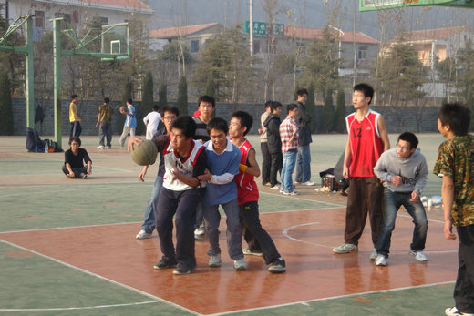 为了让每一位同学都参与到活动中,体育委员将全班同学分为四组,采取“4+1”的赛制。第一场是A组与B组的对抗,各队派出4名男生和一名女生。由于赛制规定男生不能对女生进行防守,从而使女生的球技得到了充分的发挥。各队成员轮番上场,比赛打的激烈而有趣。经过四节比赛的角逐,最终两队以59:59的成绩打平,在罚篮决胜负的过程中,B组以一个球的微弱优势胜出。