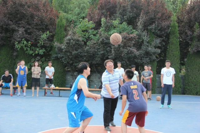 下午16时,由刘贞堂院长开球,比赛正式开始。哨声一响,篮球飞出,教职工队和毕业生队两队队员的情绪立刻沸腾起来了。在上半场比赛中,毕业生们凭着默契的配合,灵活运球、快速传球、突破防守,准确投球,毕业生队的这一系列动作一气呵成,连获几个漂亮的进球,赢得了现场观众的一片喝彩。教职工队也不甘示弱,在中场休息环节调整战术,攻守兼备,凭借娴熟的技术和精确的走位掌握了下半场的比赛节奏。每个队员都将个人技巧发挥得淋漓尽致。他们依借着疾速的精彩抢断、默契的换位联防曾一度将比分追平。最终,教职工队和毕业生队不相上下,比分相差毫厘,教职工队以96:90赢得了比赛。下午17时,比赛正式结束,教职工队以及毕业生队连同在场的工作人员一起合影留念。