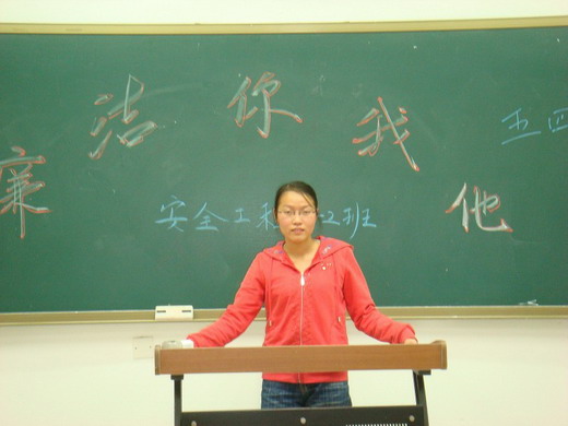 最后,班长刘洪峰对各班委的发言进行总结,进一步对廉洁文化进行了详细说明,并鼓励大家各抒己见。全班同学纷纷上台发表自己对于廉洁文化的看法。班会最后在热烈的掌声中结束。