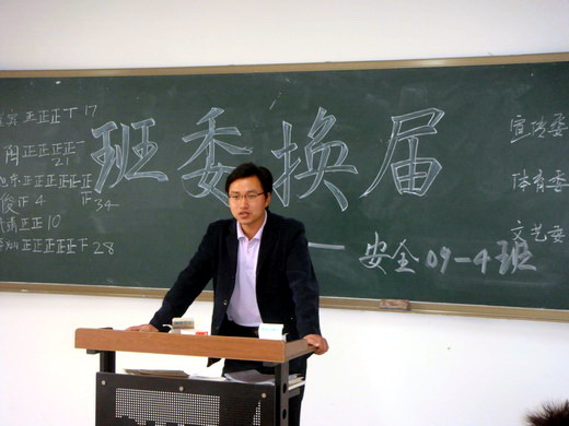 安全09-4班于教五C-201召开班委改选会议,班主任唐俊老师出席了会议。