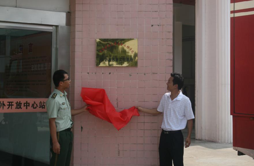 与在徐州市云龙区消防大队特勤二中队消防对外开放中心前举行了消防志愿者实践基地揭牌仪式暨韩国三级