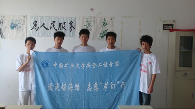 “漫漫煤海路 志愿矿灯行”实践团队以“普及安全知识,服务广大矿工”为本次实践活动宗旨。团队由安全08-1班的7名同学以及文法学院的一名宣传员组成。