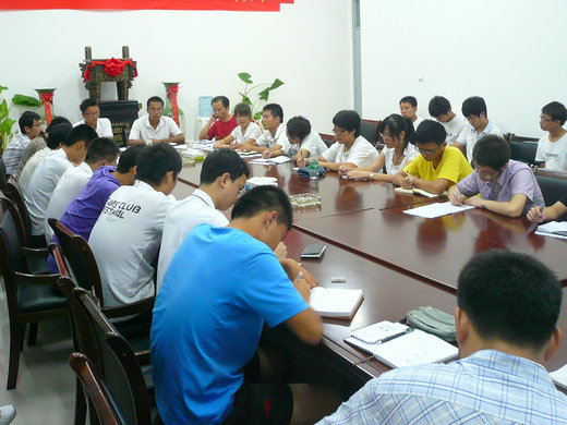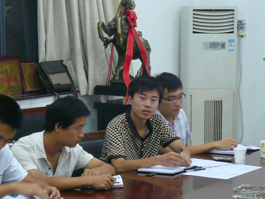 晚上七点半,学生会各部门负责人按时到达会场,无一缺席。首先,学生会主席刘建安对在座各位的到来表示热烈的欢迎;其次,他着重强调了迎新工作与迎新晚会的各项事宜,并提出了各种工作过程中所需要的物品,如帐篷、展板、运输三轮车等等。最后,刘建安总结性的提出了本学期学生会的工作展望。之后,副主席陈树亮又向各位部门负责人提出了三点要求,即工作激情、责任心和内部团结,他诚恳的希望本届学生会能以出色的风貌迎接新学期的工作。接着,副主席李晶具体的陈述了各部门的工作计划,他强调道:正部长要做到“事事有人干”,副部长则要做到“人人有事干”,从而更加明确了正、副部之间的关系。之后,副主席袁文静提出了“四有新人”的全新理念,即有想法、有行动、有原则、有作为,简单的几句话极大的启发了在场的所有人,会场不时响起阵阵掌声。最后,副主席石恺、焦汉林也纷纷提出了自己对学生会的建议和期望。会议最后,各部门负责人也踊跃的提出了自己的看法,彼此进行了深入的交流。