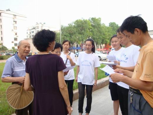 “一分低碳・十分享受”低碳环保暑期社会实践团队全体成员,来到风华园社区宣传低碳环保知识。
