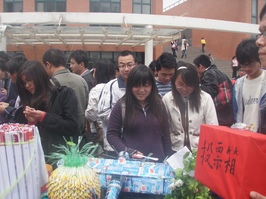 创意大赛的展台一布置完毕,就吸引了大批同学驻足观看。展区内人头攒动,活动工作人员热情地向同学们发放选票,介绍、推荐作品。同学们一边细细欣赏、啧啧称赞,一边为自己心仪的作品投票,场面十分热闹。一件件精美的手工艺品,均由平时认为“一文不值”的废料制成,这令在场的观众无不佩服参赛选手的心灵手巧与独特创意。其中,韩国三级