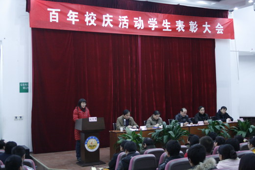 党委副书记李金明,团委书记孙留涛,07、08级辅导员李秀,09级辅导员刘筱婕以及在百年校庆活动当中表现突出的先进集体、先进个人代表参加大会。在百年校庆活动中,韩国三级