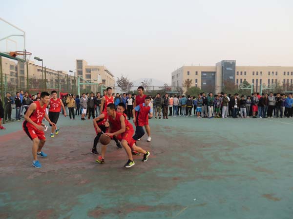 4:15比赛正式开始,安全学院首发阵容由5号得分后卫贺宏辉、7号控球后卫赖泽校、4号中锋刘家迪、10号前锋杨翰文以及9号前锋傅嘉石组成。比赛开始后,安全学院队员较早进入状态,其中贺宏辉用一记漂亮的远投为安全学院拿下两分,紧接着,他又用一记完美的三分球赢得了响亮的喝彩声和掌声,球员们情绪高涨,比赛第一次出现了小高潮。此时,体育学院的队员们也毫不示弱,频频得分,在你追我赶的形势下,比赛进入焦灼状态,比分咬得很紧。上半场结束,体育学院利用安全学院队员的几次犯规博得罚球并取得了8分的领先。中场休息时,安全学院教练对人员进行了重新安排,对战术进行了相应的调整,安全学院的啦啦队员们更是用呐喊和掌声给予了队员们充分的鼓励。下半场一开始,10号杨翰文在进攻时遭到对方犯规,获得两次罚球的机会,他沉着冷静地用两罚两中缩小了分差。面对体育学院队员们的步步紧逼以及身高优势,安全学院的队员们没有丝毫畏惧,他们团结一心,配合默契,用一次次成功的抢断和得分展示了安全人的精神。比赛结束,安全学院以18比34惜败于体育学院,但是正如13号球员吕科说的一样,虽然我们输了,但我们打出了我们安全男篮的水平。队员们表现优异,用意志和勇气为观众们奉献了一场青春的盛宴。