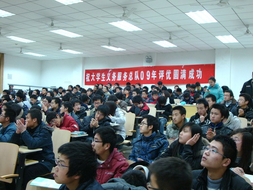 学生义务服务总队09年评优答辩会于教五A107顺利举行。学生工作处刘升、张建辉、贾丽丽、谷娟,义务服务总队指导老师杜文博,自强社社长、副社长,服务中心主任、副主任、队长、副队长出席本次答辩会并担任评委。