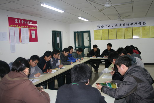 会议于九点十五分正式开始。伏旭首先向在座各位简单介绍了一二・九运动的背景、过程和重要意义,鼓励大家积极发掘其深层次意义,努力向前辈们学习可贵的爱国精神。他分别从爱国运动和青年责任两个方面进行阐述,讲解了自己对一二・九运动的认识。他引用了奥运火炬传递期间徐州出现的抵制家乐福等事件,指出大学生应当理性爱国,并提出“三思而后行”、“以国家利益为重”、“丰富自己技能,实现个人价值”和“心怀感恩”四点要求。接下来,与会人员纷纷积极发表各自的看法,结合学院发展现状、学生学习状态和学生 会发展问题,指出了一二・九运动的现实意义,力争在全院形成弘扬爱国精神的良好风气。