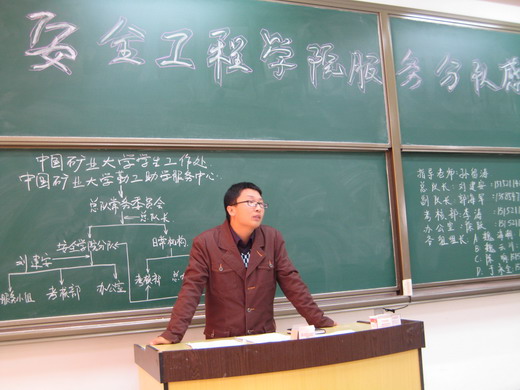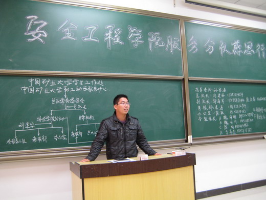 服务分队是在校学工处指导下,在校勤工助学服务中心以及校义务服务总队领导下的一支公益性服务队伍,指导热衷于社会义务服务的同学开展公益活动,为广大学生提供一个感恩他人、回报社会、锻炼自己能力的平台。刘建安代表广大贫困建档的同学们说“在大家最困难的时候,是学校帮助了我们,在我们学有余力的时候,更应当充分发挥主动性,做实事回报学校和他人。”在回顾服务分队过去两年所取得的成果后,刘建安指出服务分队的发展将面临的现实问题并鼓舞广大队员要齐心协力,培养感恩意识、公众意识和责任意识,努力将服务分队建设成为学院的一支强有力的生力军。随后,考核部部长李涛具体向大家介绍服务分队的规章制度及考核办法,鼓励大家端正态度,积极工作。
