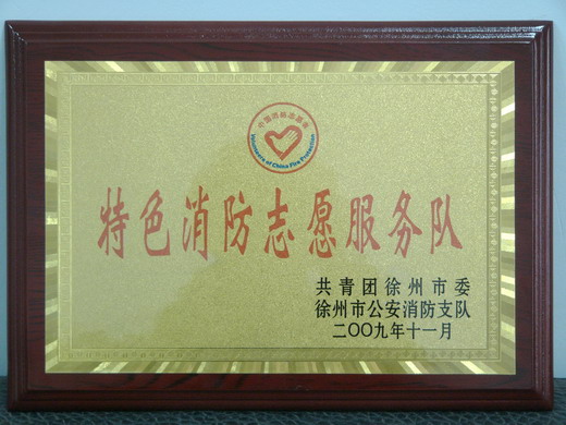 学生为主体的校消防志愿者大队被共青团徐州市委和徐州市公安消防支队授予“特色消防志愿者服务队”,校保卫处副处长杜志荣出席授牌仪式。