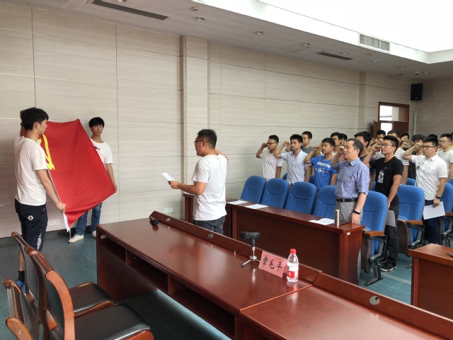 党课正式开始前,章毛平书记与全体毕业生党员一起参加重温入党誓词宣誓活动。