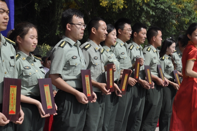 在18天的军训中,同学们发挥不怕苦不怕累的精神,炎炎烈日下挥洒汗水,倾盆大雨中奋勇向前。先后在各个单项评比中荣获内务评比第1名、队列会操第3名、定向越野第13名、合唱比赛第12名、宣传报道第6名等优异成绩,总成绩名列全校第五名。在军训总结表彰大会上,安全16-1班和安全16-2班被授予“校级军训先进班集体”的称号,关欣等20名同学被评为“校级军训先进个人”;杨雅莉等20名同学被评为“院级军训先进个人”。