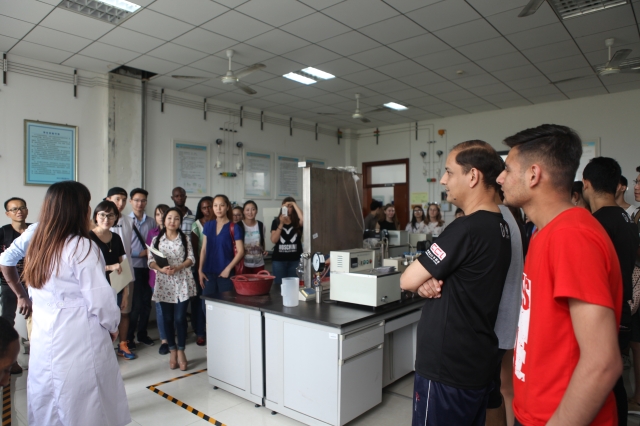在周院长作报告之前,煤矿瓦斯治理国家工程中心副主任周劲锋老师和学院吴冬梅老师的带领留学生们参观了安全学院各个实验室。留学生们对实验室的仪器设备和实验内容很感兴趣,问题不断,现场老师都做了一一解答。