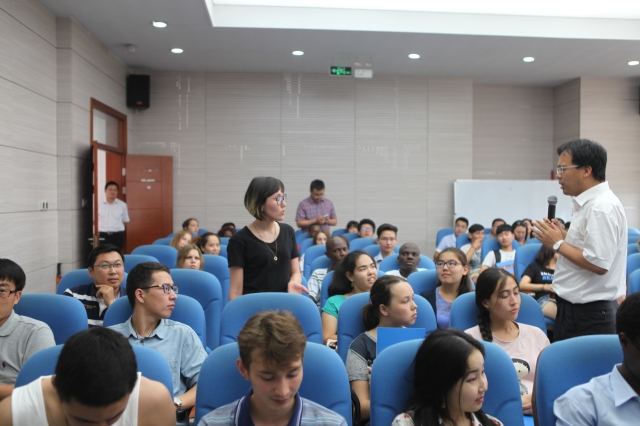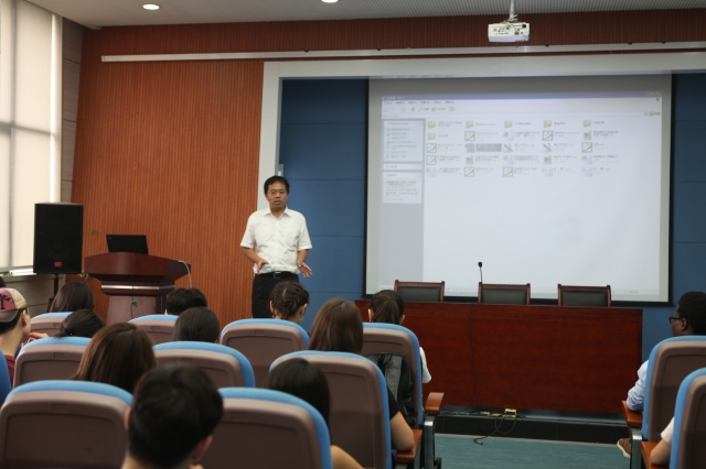 院长周福宝教授在矿科A200为留学生们作了韩国三级概况