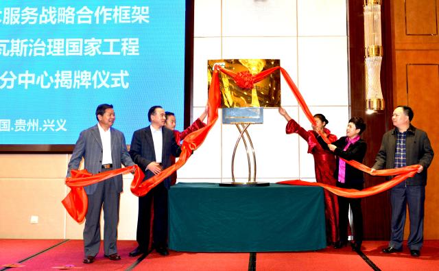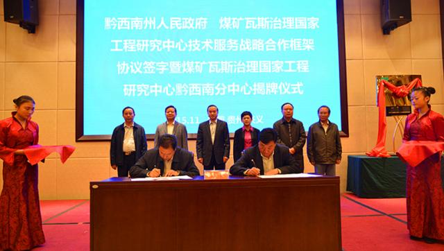 副校长秦勇,中国工程院院士、煤矿瓦斯治理国家工程研究中心主任袁亮,黔西南州委副书记、州长杨永英,贵州省安监局党组成员、煤监局副局长陈富庆等出席签字仪式,并为国家工程研究中心黔西南分中心揭牌。