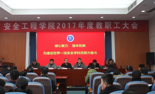 会上,周福宝院长作2017年度工作报告,从教学、科研与研究生管理、学科与平台建设、师资队伍建设、管理与服务工作、党建群团与学生工作等七个方面全面回顾和总结了安全学院2017年的工作,对学院发展过程中遇到的困难和问题也做了梳理,希望通过教职工大会听取大家对改进工作的意见和建议。章毛平书记作学院廉政建设情况报告,回顾了学院过去一年在廉政建设中采取的措施和取得的成效,对下一步加强党风廉政建设提出了新的要求。朱晓东副院长作2017年度财务工作报告,对学院财务收支情况进行了详细的说明。院工会副主席孙婷作2017年度工会工作报告。