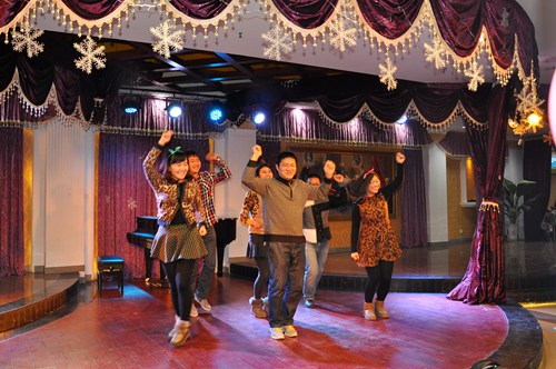 新年零点之后,在全校团学加班工作餐上,各学院学工系统领导与教师为全校师生送出了诚挚的祝福。葛世荣、曹德欣等校领导出席了聚会。在院党委副书记钱雄的带领下,安全学院学工办第一个上场表演,为大家送上了精彩的开场舞《The Fox》。动感的节奏,时尚的舞姿,引爆聚会现场,展现了安全学院的活力与风采。舞蹈最后,学工办全体还向大家送出了新年快乐、马年吉祥的美好祝愿。