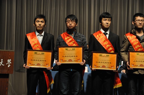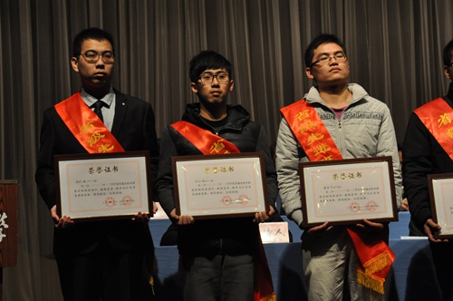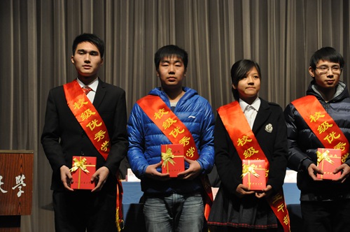 人获得国家励志奖学金,路世远同学获得省级优秀学生干部称号,何选泽同学获得省级三好学生称号,王李等5名同学获得校级优秀学生干部称号,潘荣亮等19位同学获得校级优秀学生称号。在研究生表彰部分,安全学院近百余名研究生获得了奖学金。颁奖仪式结束后,部分优秀班集体及个人登台发言。本次表彰大会在隆重的校歌声中圆满结束。