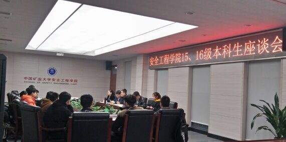 11月28日下午,低年级本科生座谈会在矿科A412召开,院长王恩元,党委副书记钱雄,各班学术、行政班主任和学工办主任于基伯出席了座谈会。座谈上,王恩元院长首先介绍了安全科学与工程学科的发展现状、学科未来的发展规划和部分正在进展的科研项目,鼓励同学们在课程安排、科技创新能力培养、学生管理等方面提出意见和建议。参加座谈会的17、18级学生代表共20人,围绕融入学院实验室的渠道、了解与学院教师的沟通的方法、如何学好基础课等问题一一发言,提出了自己的看法和疑惑。在场的老师们分析了同学们的提问并给予解答。